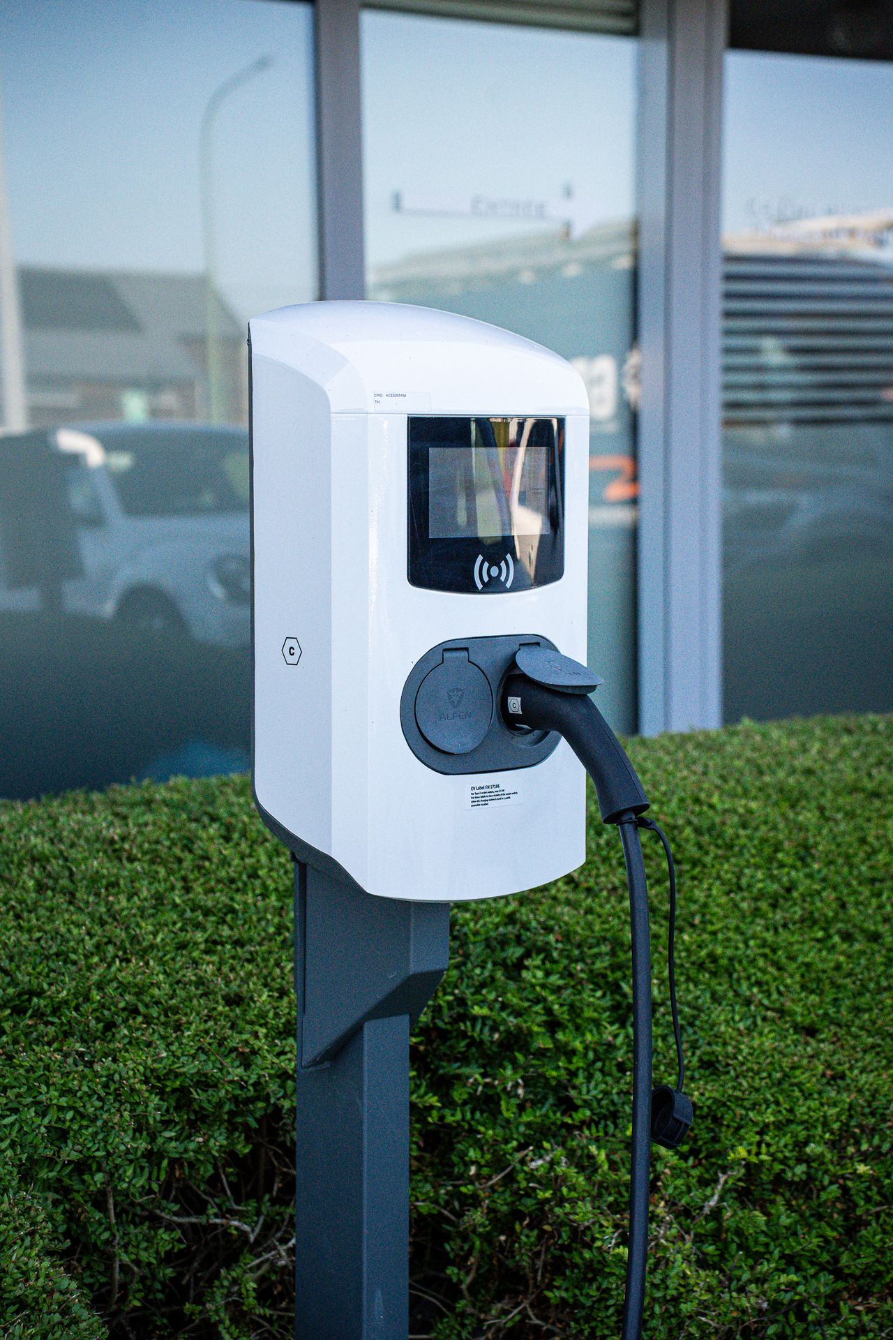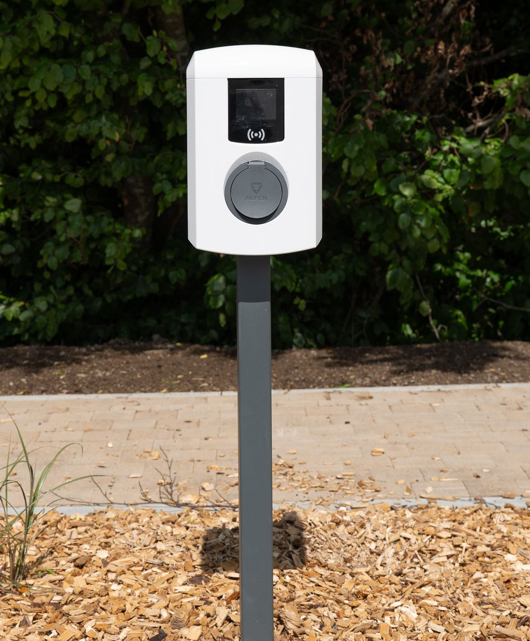 La borne ALFEN affiche un design plus industriel et robuste.